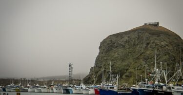 matin de brume sur le port de Cap-aux-Meules… malgré tout, les préparatifs sont conviviaux.