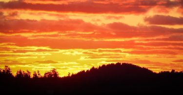 déguster des yeux un beau ciel orangé… mariant la courbure d’une butte arboré.