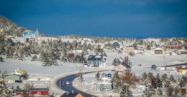 lumière sur chaumières et sapins… leur donnant des airs de village alpin.
