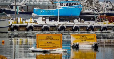 souvent agité, le quai de CAM semble figé ce matin… répit de vague et de vent dans...